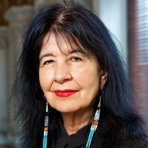 Joy Harjo, the 23rd Poet Laureate of the United States, is a member of the Muscogee Nation. She is only the second poet to be appointed a third term as U.S. Poet Laureate. Harjo is the author of ten books of poetry, including her most recent, Weaving Sundown in a Scarlet Light: Fifty Poems for Fifty Years (2022), the highly acclaimed An American Sunrise (2019), which was a 2020 Oklahoma Book Award Winner, Conflict Resolution for Holy Beings (2015), which was shortlisted for the Griffin Prize and named a Notable Book of the Year by the American Library Association, and In Mad Love and War (1990), which received an American Book Award and the Delmore Schwartz Memorial Award.